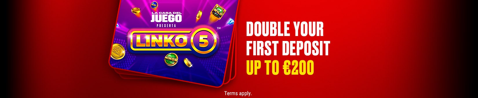 New casino players can claim our first deposit bonus offer and double their deposit up to €200.