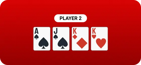 This time, no player has a particularly good hand, but they can both use the kings to make a Pair. However, Player 2 wins courtesy of their jack kicker.