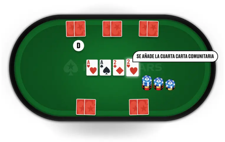 Se reparte una cuarta carta comunitaria boca arriba, seguida de otra ronda de apuestas.