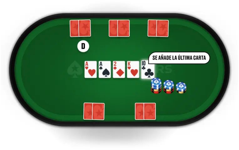 Se reparte boca arriba la quinta y última carta comunitaria, y comienza la ronda final de apuestas.