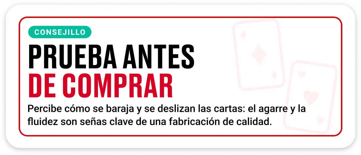 | Modiano | 100% plástico acetato | 15-25€ | 90-100 partidas | Casinos europeos, jugadores exigentes |