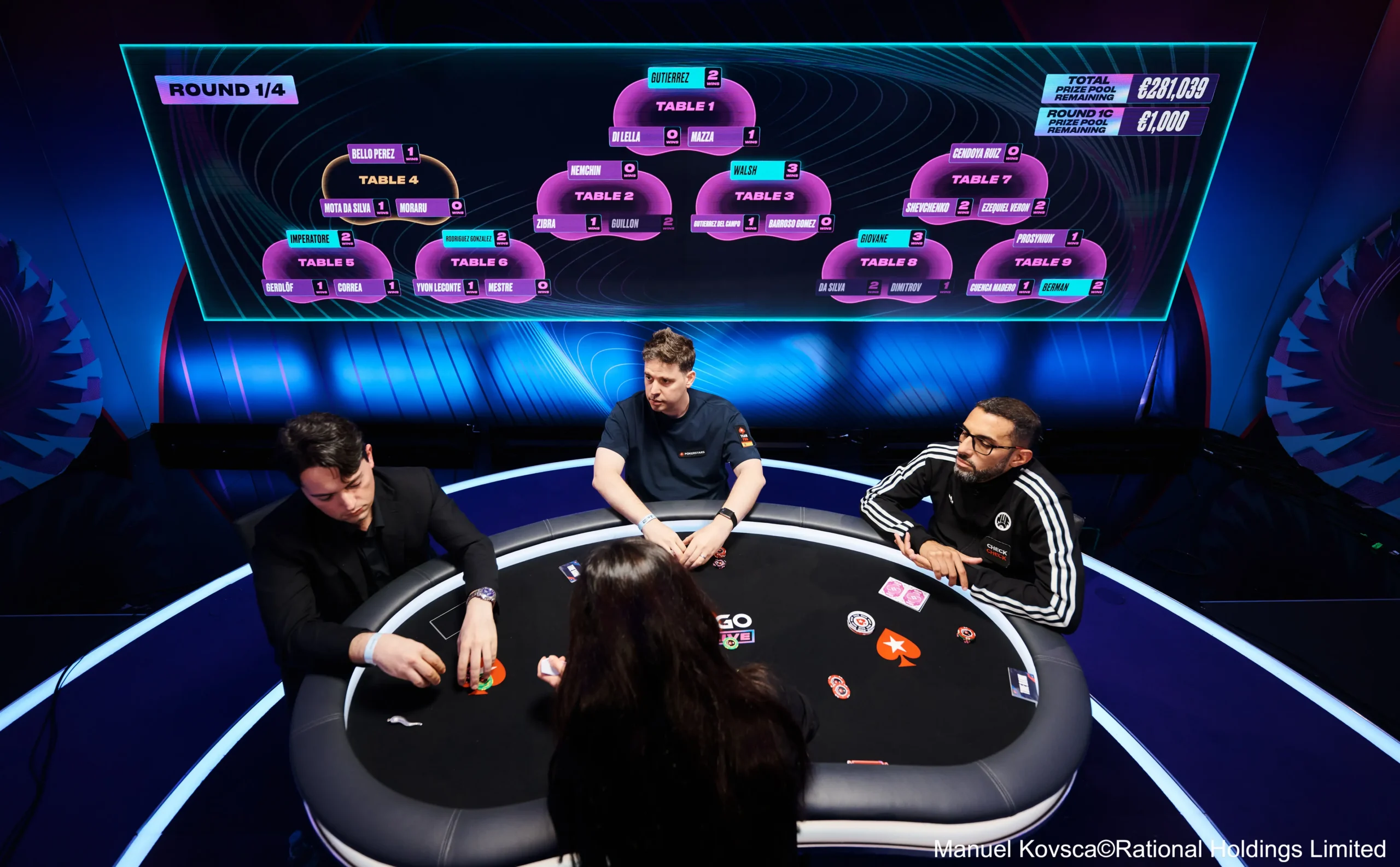 La criba fue tan directa como el propio formato: de 81 a 27 jugadores en la primera ronda y de 27 a 9 en la segunda. Sin red. Sin margen. Tres mesas decidirán ahora quién se lleva los 150.000 € reservados al campeón.