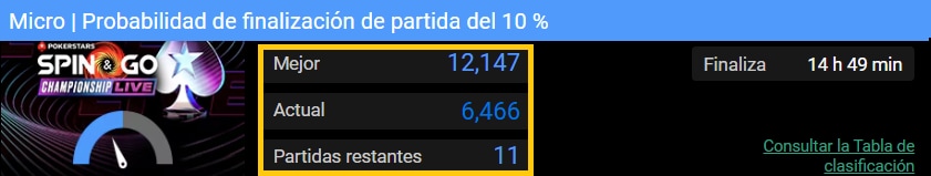 Puedes realizar un seguimiento de tu puntuación actual en todo momento directamente en las mesas, cuando finaliza el torneo Spin & Go o a través de la sección Tablas de clasificación del software.